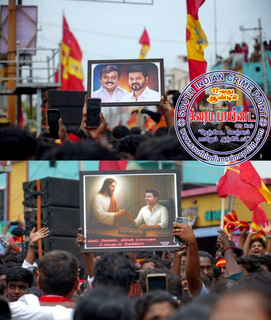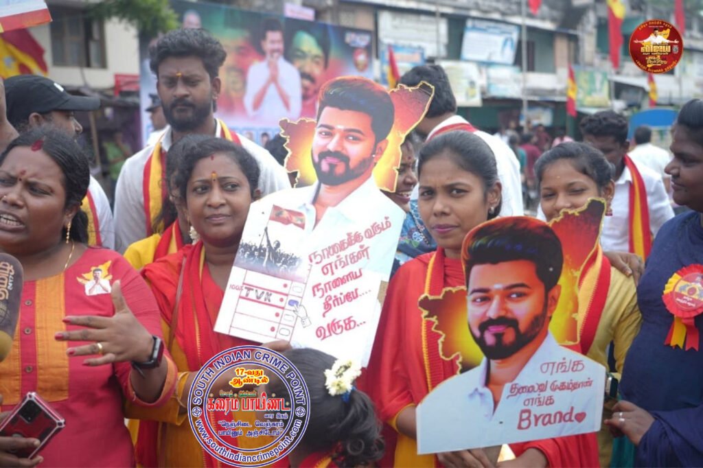 தொடர்ந்து நாகூர், நாகை கலெக்டர் அலுவலகம், வலிவலம் தேசிகர் பாலிடெக்னிக் வழியாக கிழக்கு கடற்கரை சாலை சென்று அங்கிருந்து புத்தூர் ரவுண்டானா அருகே உள்ள அண்ணாசிலை சந்திப்பு பகுதிக்கு சென்றார். அப்போது அங்கு கூடியிருந்த பல்லாயிரக்கணக்கான பக்தர்கள் மத்தியில் அவரது பிரச்சார வாகனம் ஊர்ந்து சென்றது. தொண்டர்கள் மேள தாளத்துடன் மலர்கள் தூவி விஜய்க்கு வரவேற்பு அளித்தனர். காவல்துறையினர் அனுமதித்த நேரத்தை கடந்து அவர் பிரச்சாரத்தை துவக்கினார். விஜய் தனது பிரச்சார வாகனத்தின் மீது ஏறி வந்தவுடன் தொண்டர்கள் விஜய் வாழ்க… வாழ்க என்று உற்சாச குரல் எழுப்பினர்.